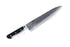 is an exquisite example of Japanese knifemaking, perfect for chefs who value precision and reliability. This knife with a blade length of 21 cm combines excellent handling and versatility, ideal for a wide range of cutting tasks in the kitchen. The blade is made of 33 layers of Damascus steel with a core of VG10 stainless steel, known for its outstanding sharpness and durability. This not only guarantees long-lasting edge retention, but also shows an impressive, wave-like pattern that gives the knife a distinctive look. The handle made of black POM (polyoxymethylene) offers high durability and strength as well as an ergonomic shape for safe and comfortable handling, which enables fatigue-free work even during longer kitchen projects. The simple, black finish of the handle also highlights the elegant Damascus blade and gives the knife a modern, professional look. Ideal for cutting meat, fish and vegetables, the KC 202 Gyuto is an indispensable tool for anyone looking for a powerful and aesthetically pleasing kitchen knife.